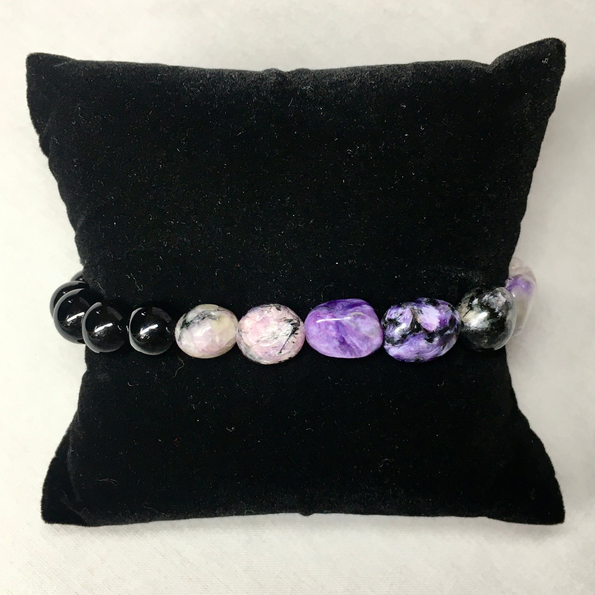 Choose between a variety of bracelets of different stones, colors and sizes or choose one for every outfit! Bracelet is on elastic band that stretches.