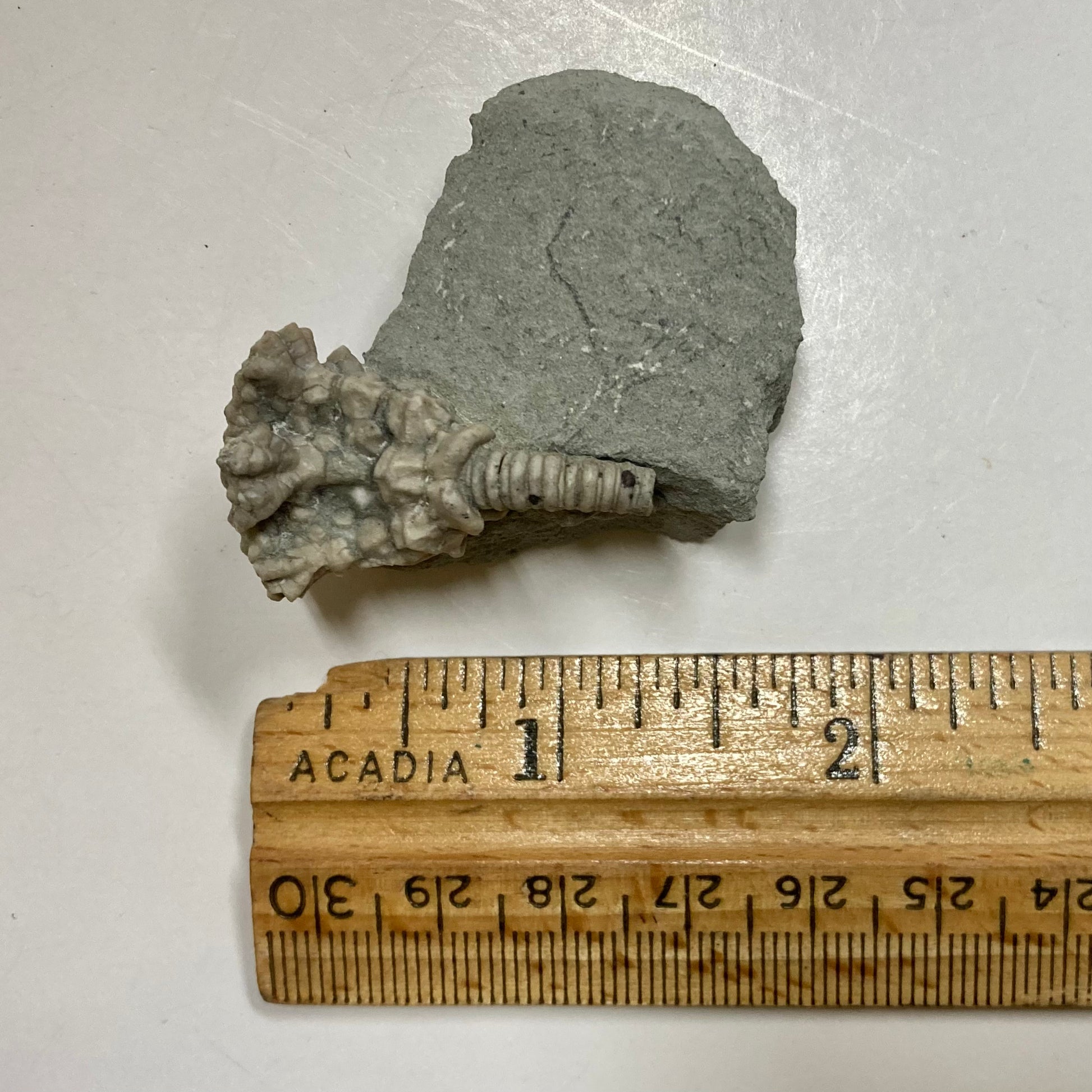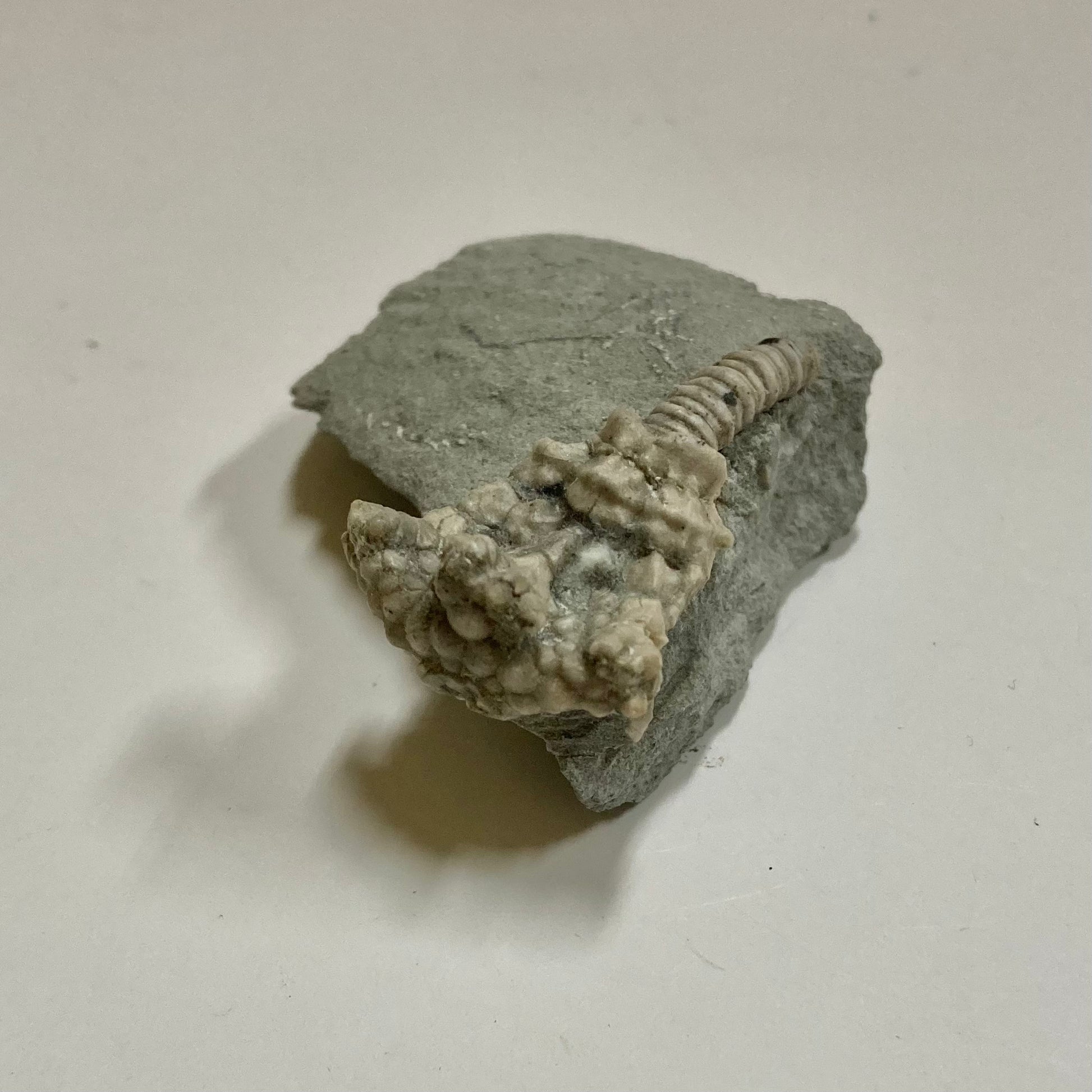 Actinocrinites gibsoni crinoids of the world famous Edwardsville Formation date back to the Mississippian Period (320 million years ago). This species can also be found in Australia, China, Europe and the United States.