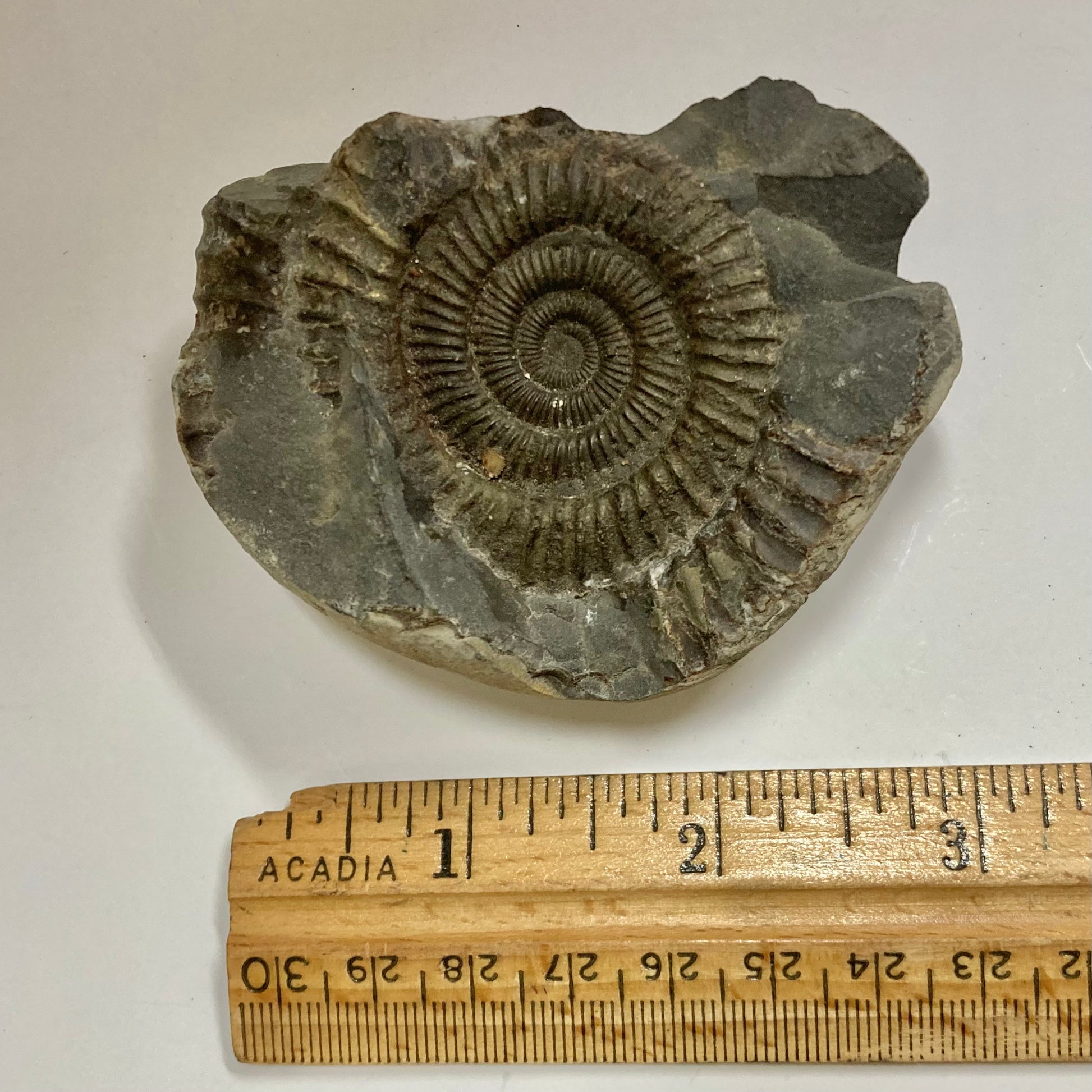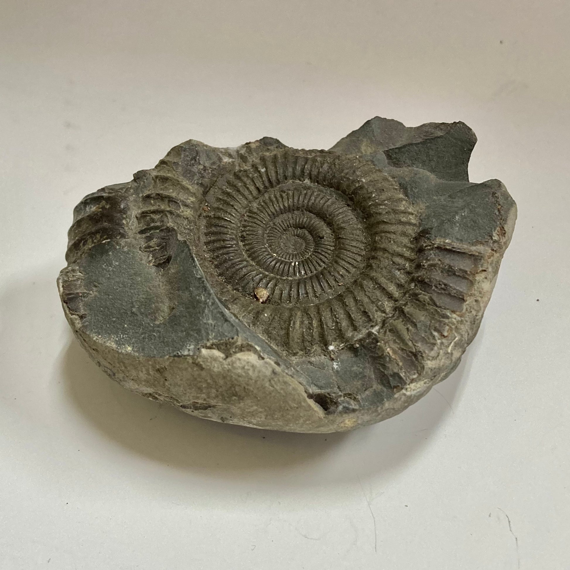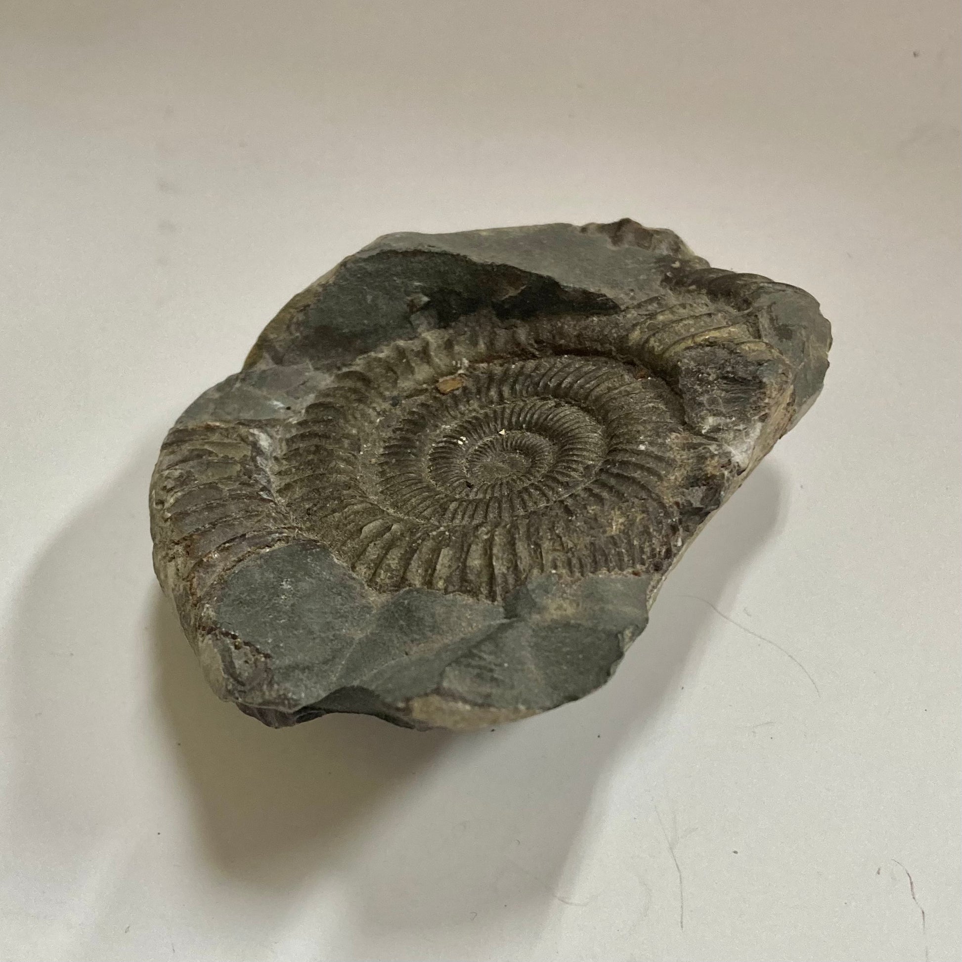 This ammonite is named after the Greek word dactyl meaning "fingers" because of the many straight ribs on its relatively small but strong shell. Mass mortality specimens are found all over the world, especially in Europe, indicating Dactylioceras may have died shortly after traveling to a specific area for spawning, allowing their shells to wash up in large quantities on the banks of the Jurassic seas.