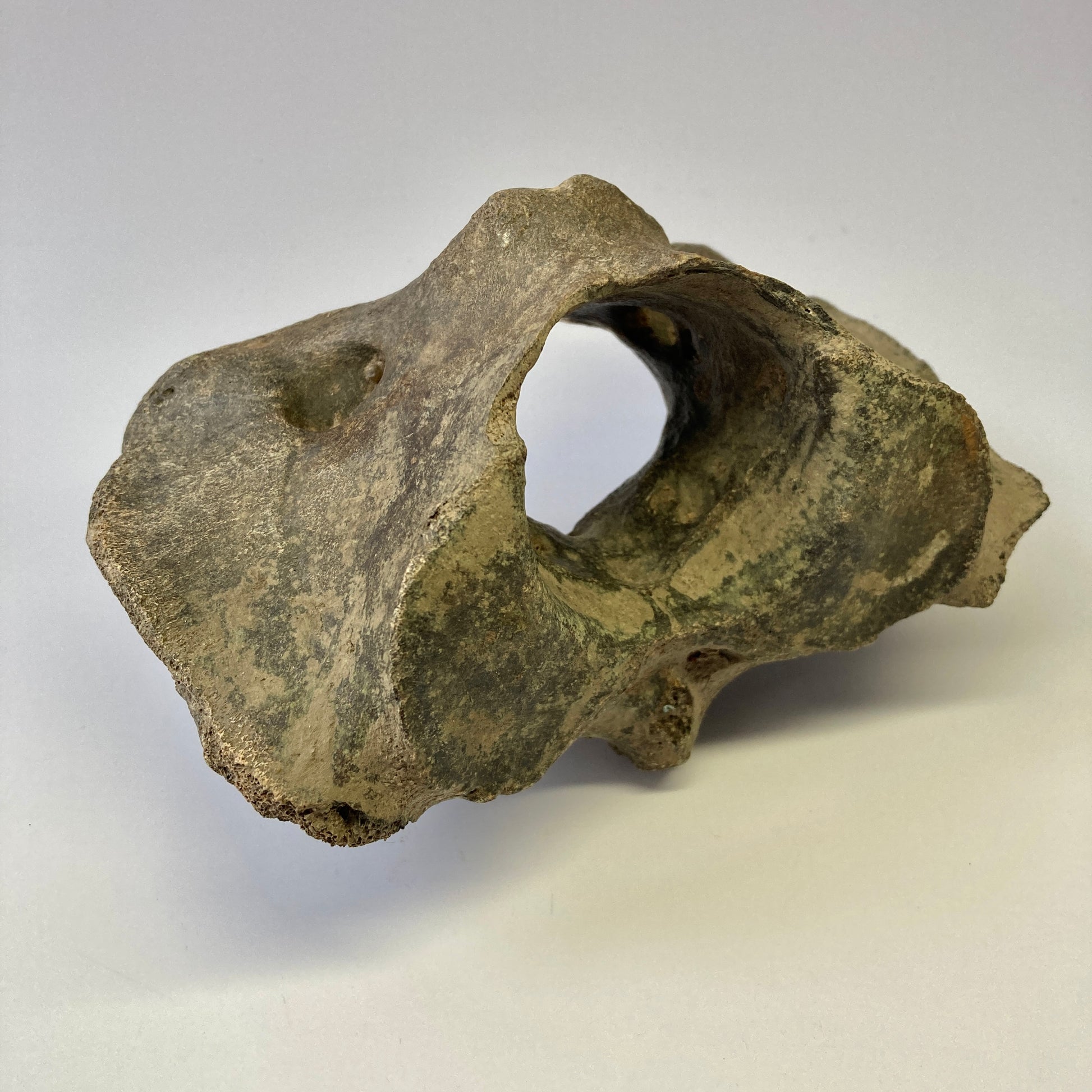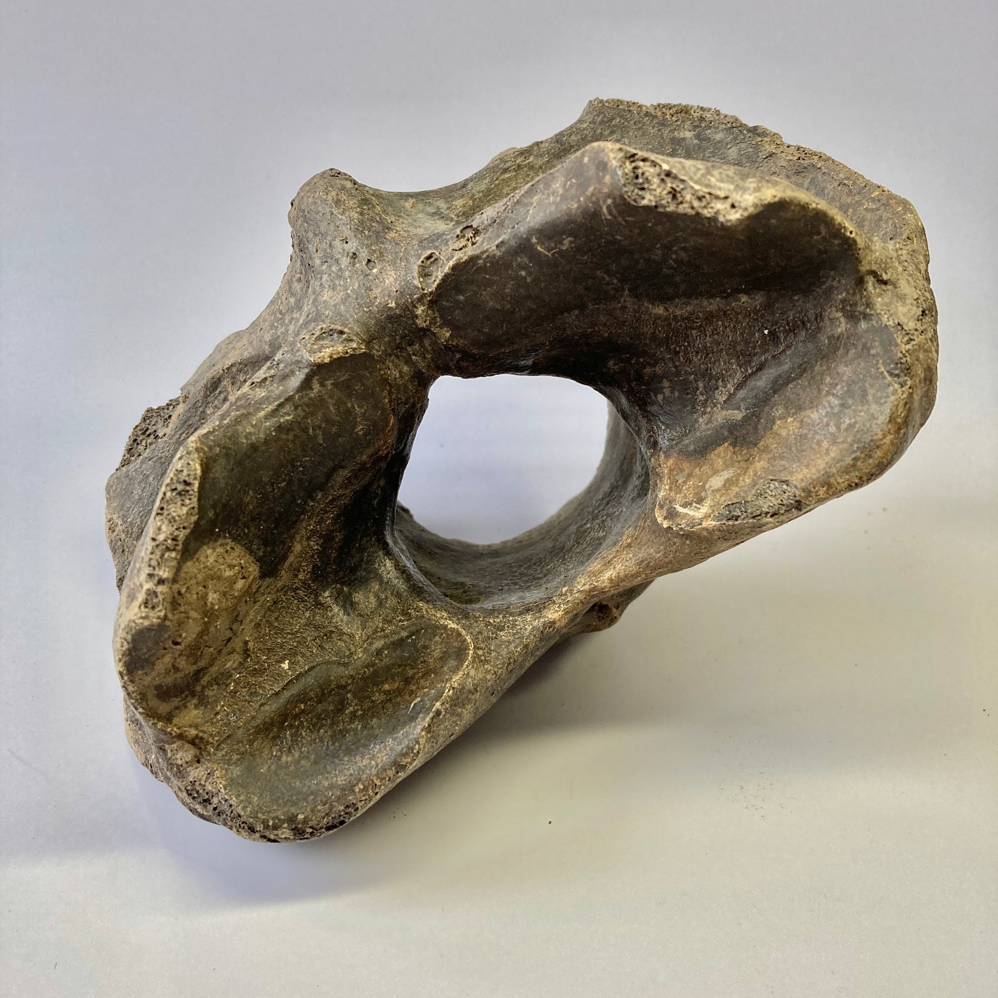 This atlas vertebra from an early bison species dates back to the Pleistocene. It has not been restored or repaired in any way.