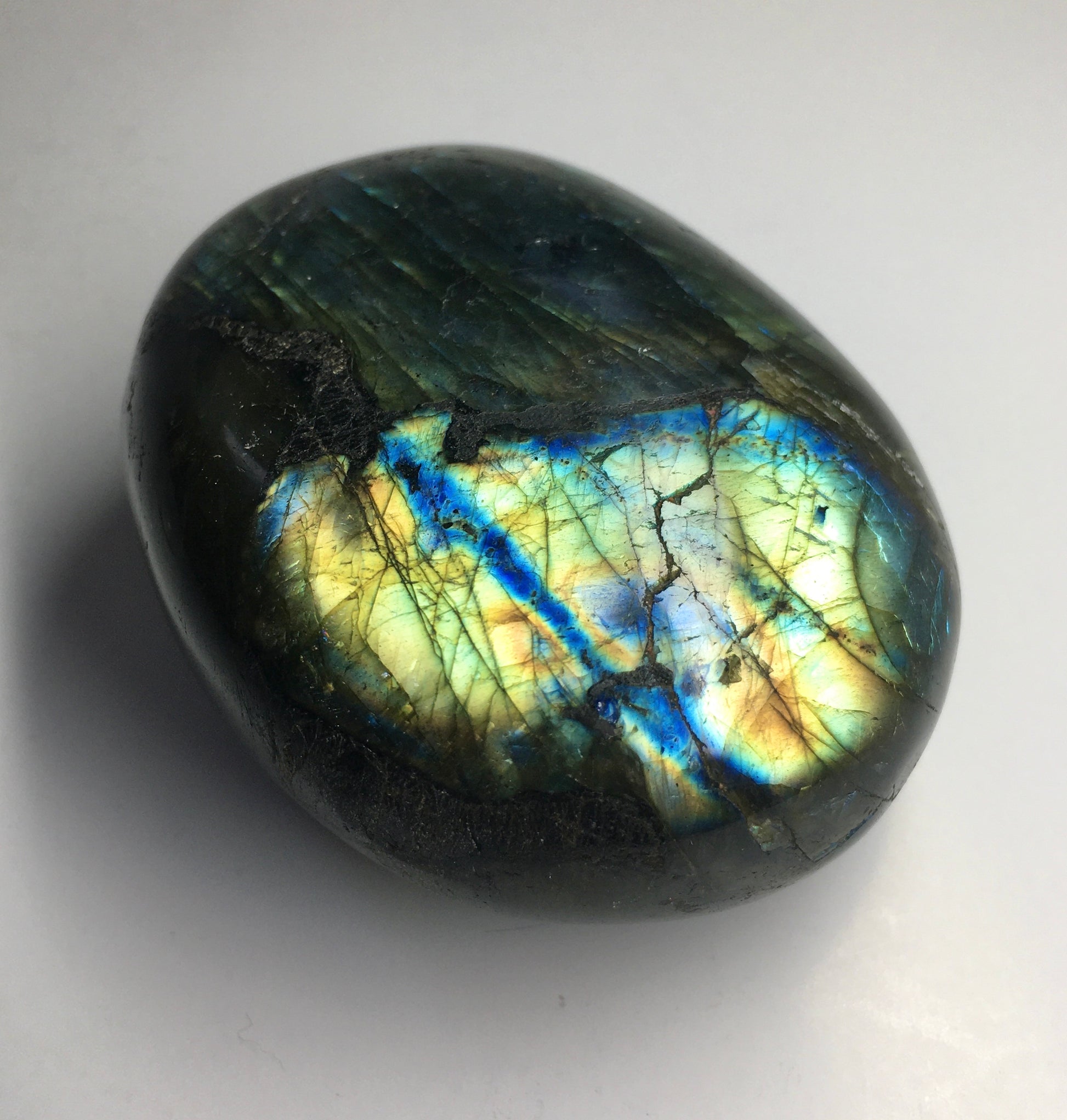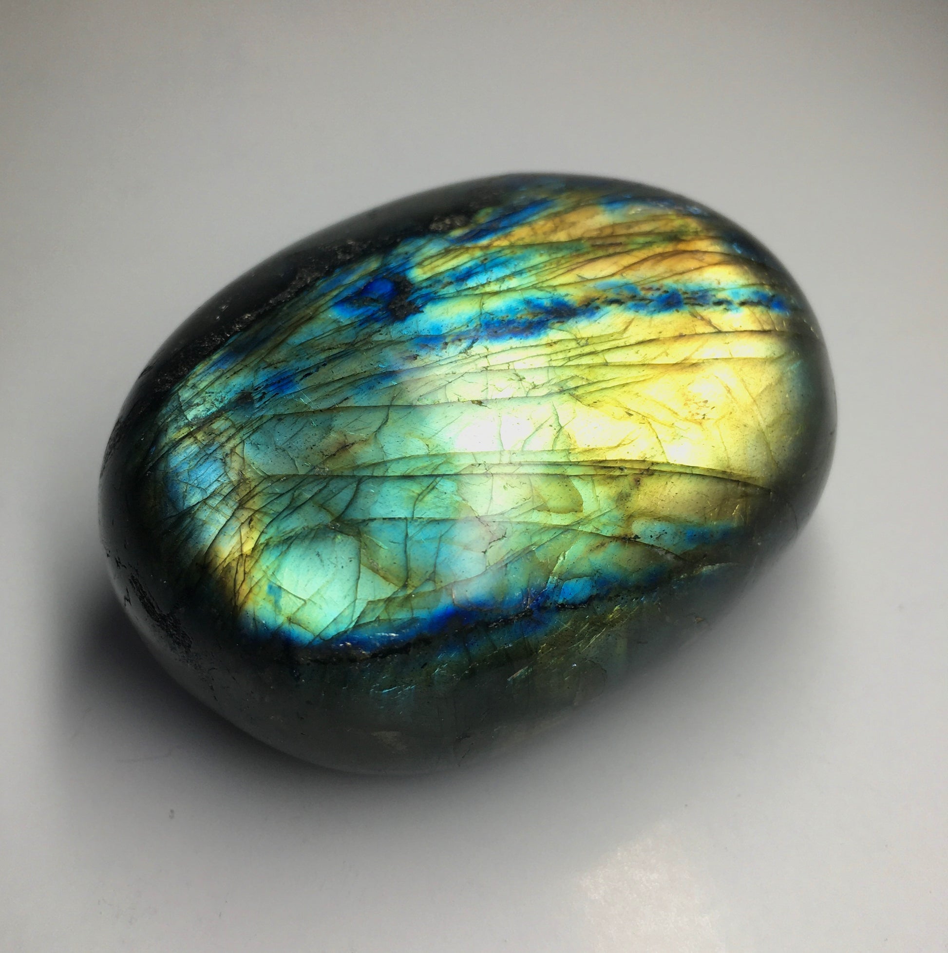 Labradorite is a feldspar mineral that is made up of aggregate layers that refract light in an iridescent manner. The iridescent effect labradorite produces is known as “labradoresence” where color gradually changes as your angle does. It was originally discovered in Labrador, Canada.