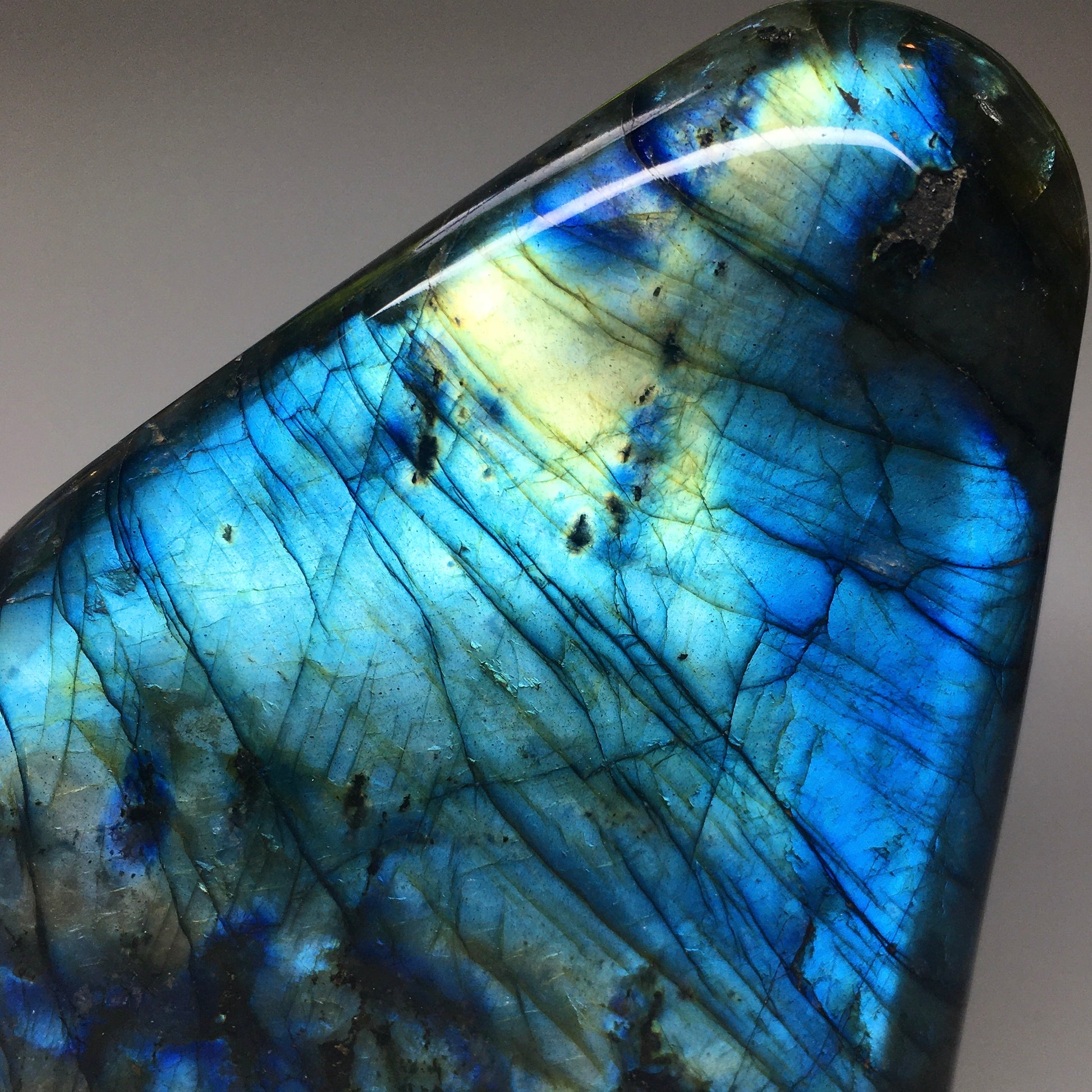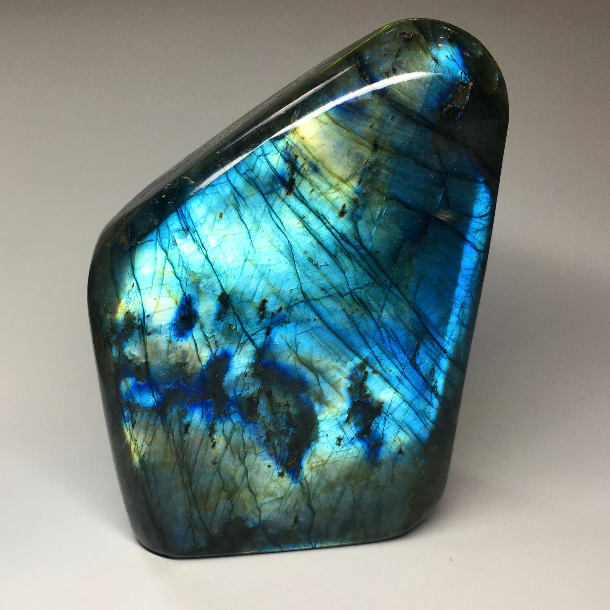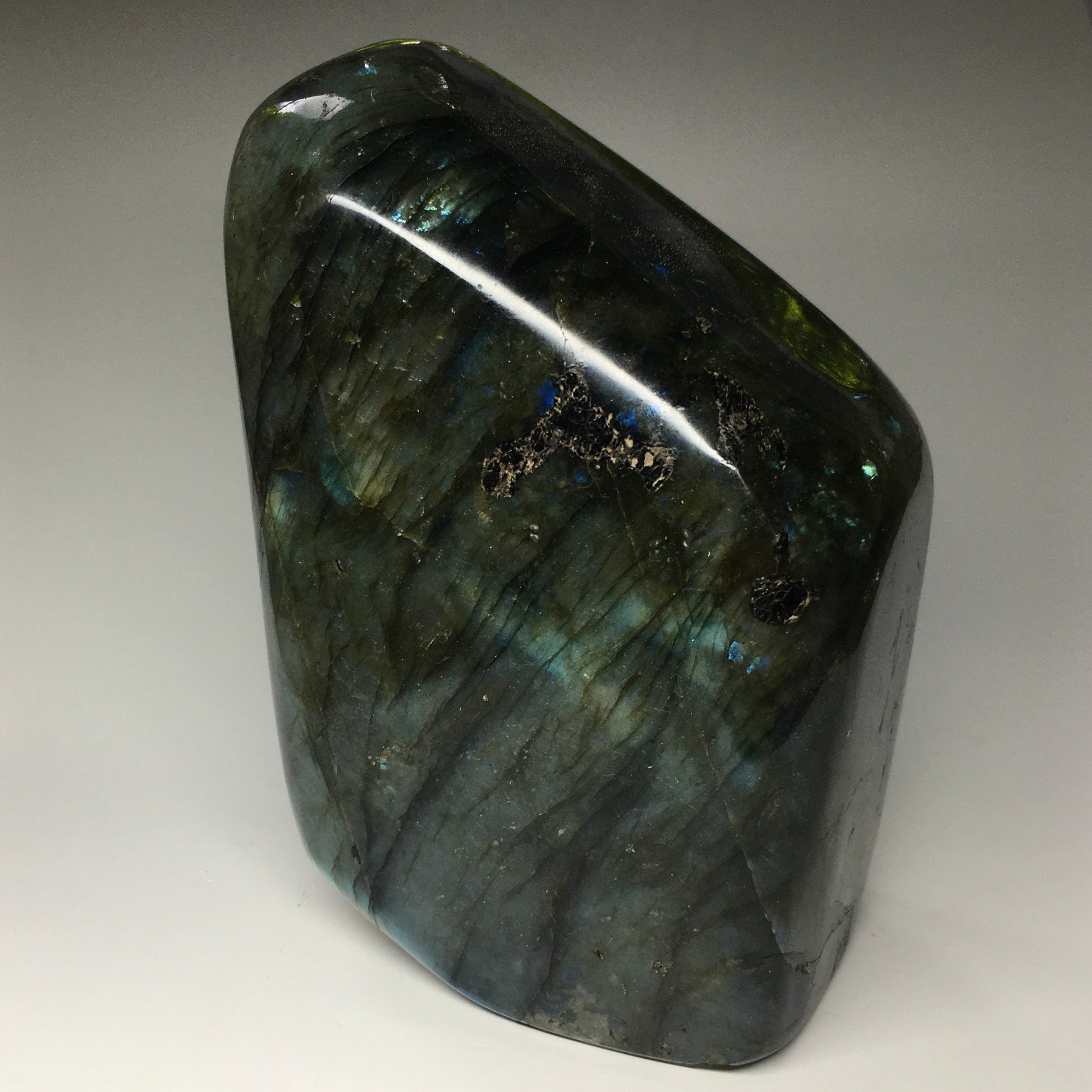This captivating labradorite stone is polished and shined to bring out the stunning blues, greens, and yellows that were hiding within!
