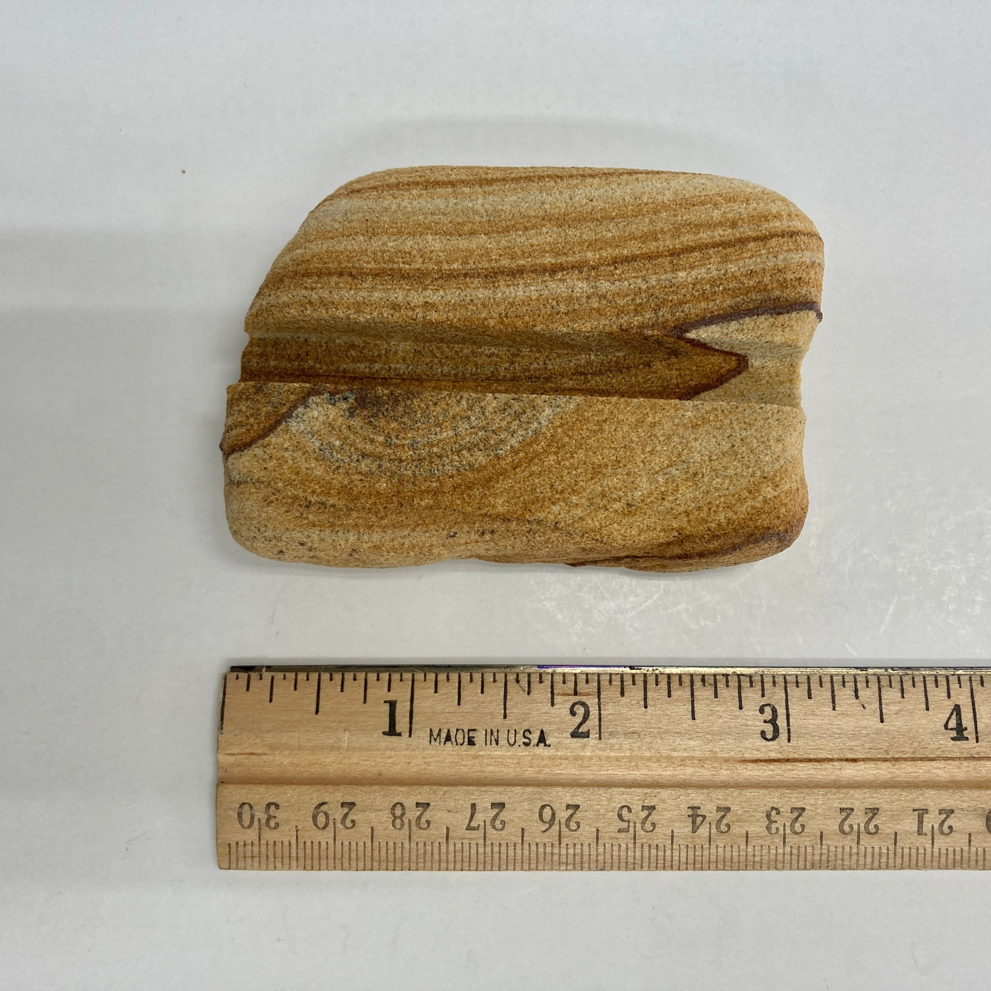 This mineral is created when sand is cemented together into rock. The bands formed are due to layers of sand that differ characteristically.