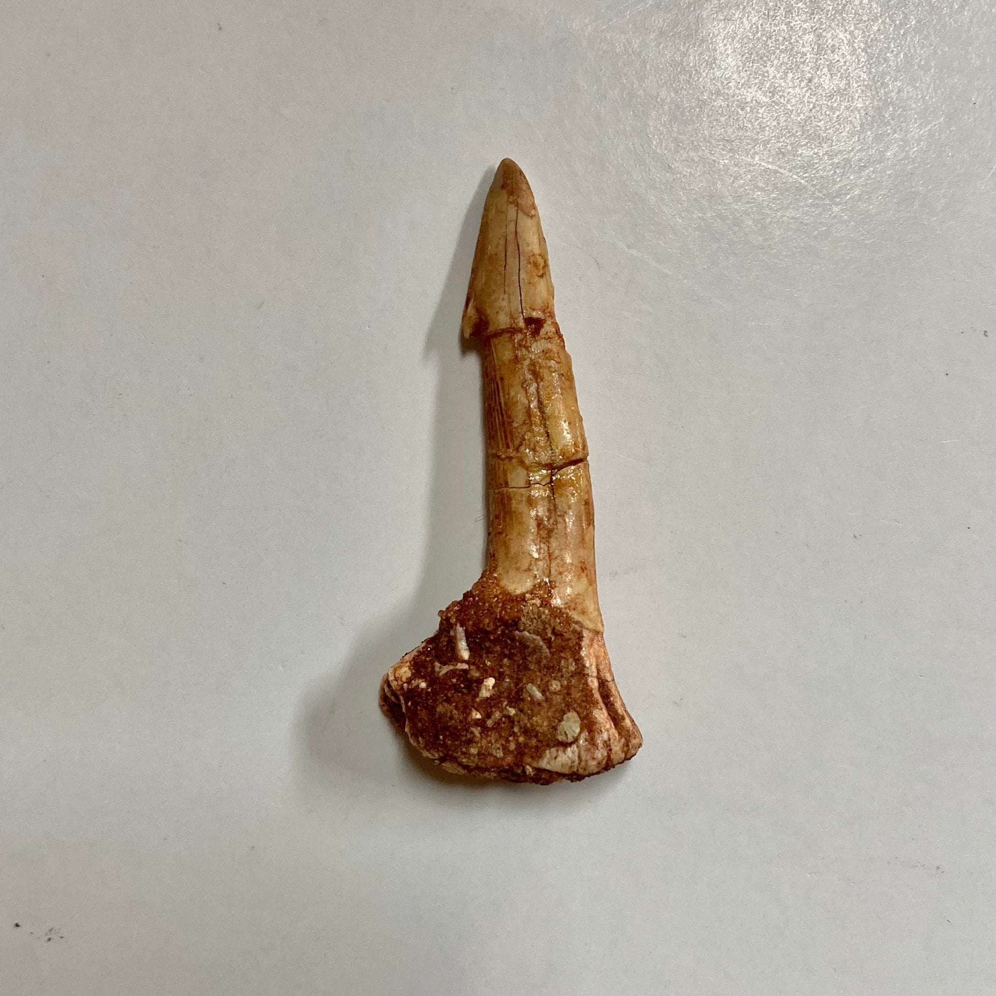 Similar to today's sawfish, it had a long rostrum saw which extended in front of the fish with rigid, tooth-like denticles. It is theorized to have been used to slash and stun prey or even predators like sharks and crocodiles. Sawfish teeth have been found embedded in Spinosaur jaws, proving these two beasts often clashed.