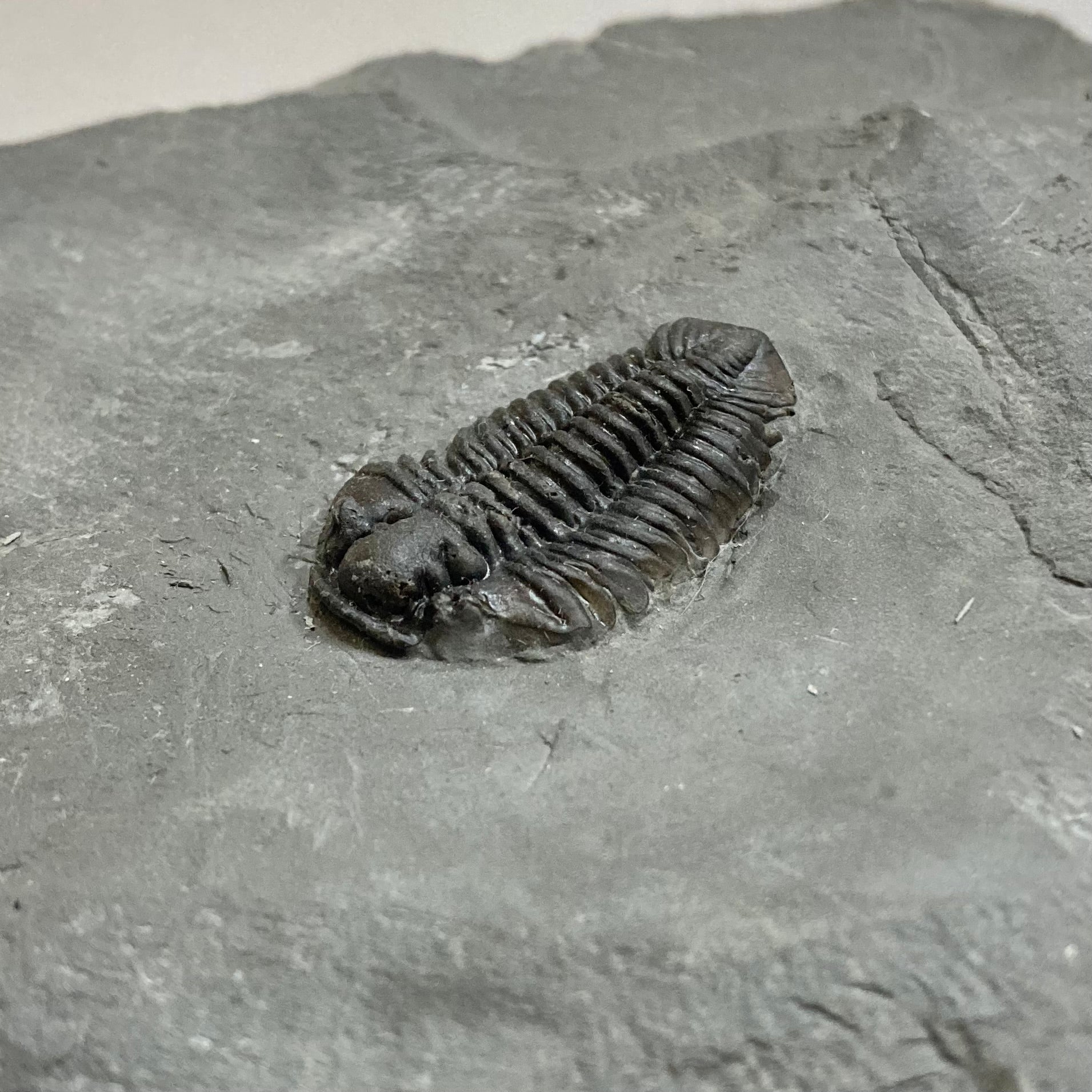This Silurian-aged trilobite that fed off the bottom of shallow seas. It was relatively small, only reaching lengths of about 1 inch.